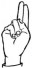 На ћирилици написано БРАНИМИРКА КОЛИЋ састоји се из 15 слова [?]. Исписано ћириличном једноручном азбуком за глувонеме:
